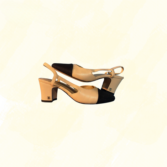 Chanel Slingback Shoe - Not Authenticated - Beige/Black - 38