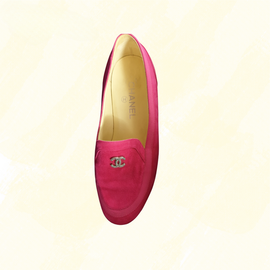 Chanel Suede Leather CC Slip on Loafer - Pink 37.5
