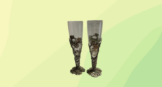 Vintage Hand Blown Glass & Pewter Wine Glasses x2