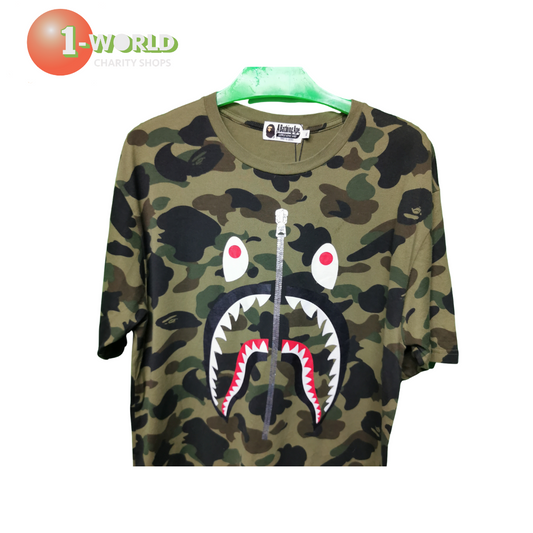 A Bathing Ape Camo Shark Tee Shirt - XL Green Camo