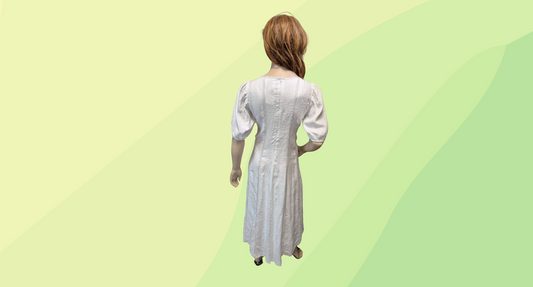Dissh Linen Dress with Brown Stitching - Size 10 - White