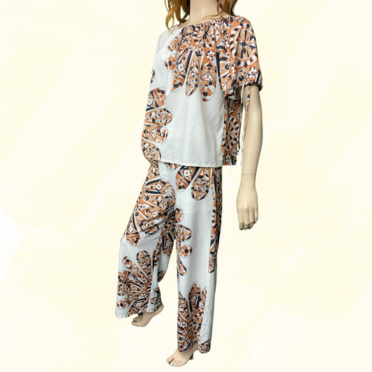 Tory Burch 2 PCE Pant Suit - White/Brown Pattern - M