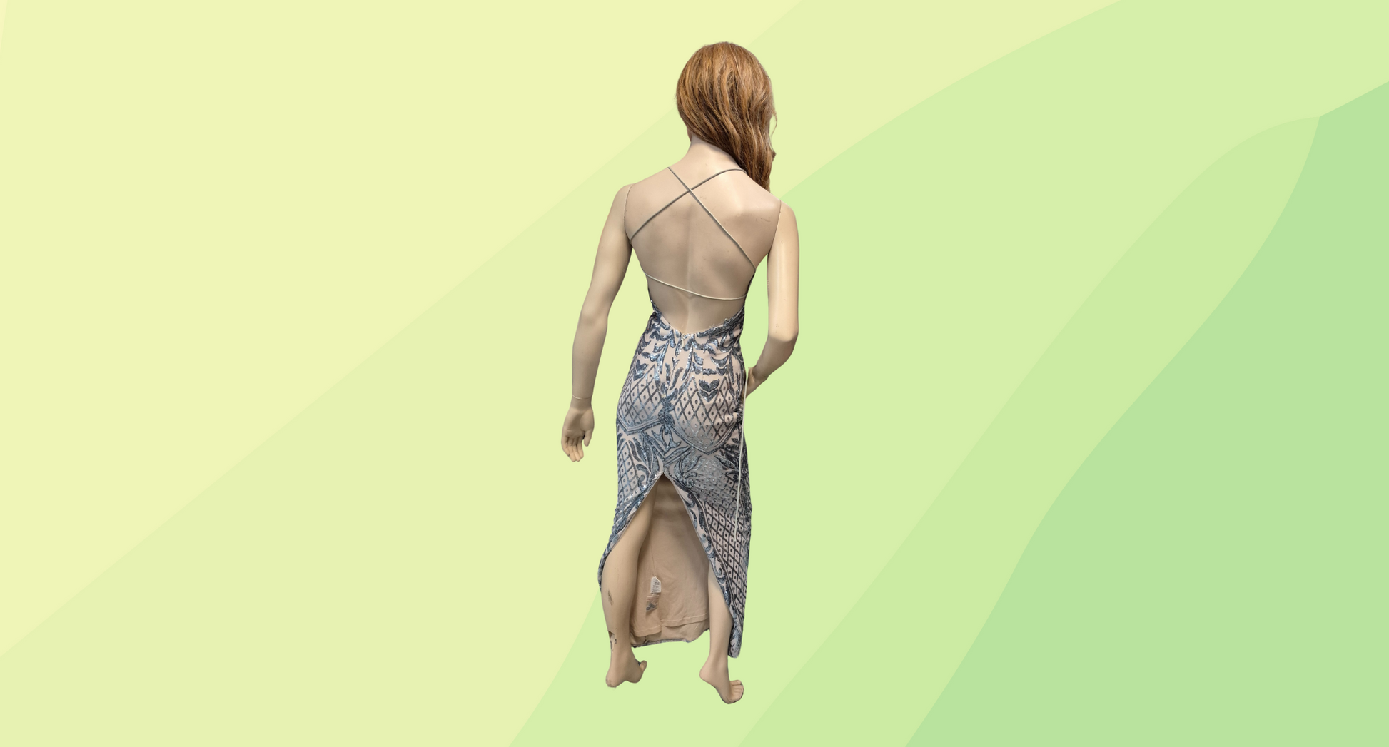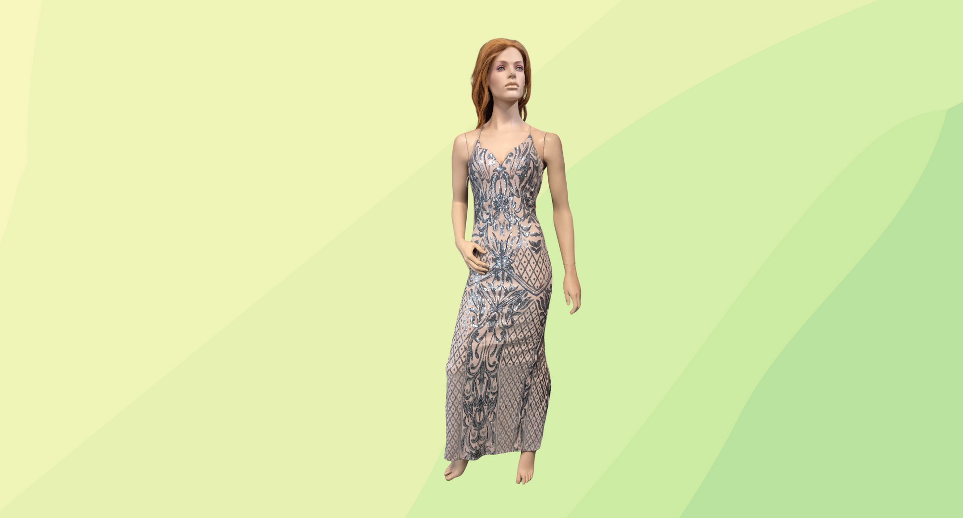 Bariano Sequin Gown - Size 6 - Nude/Silver