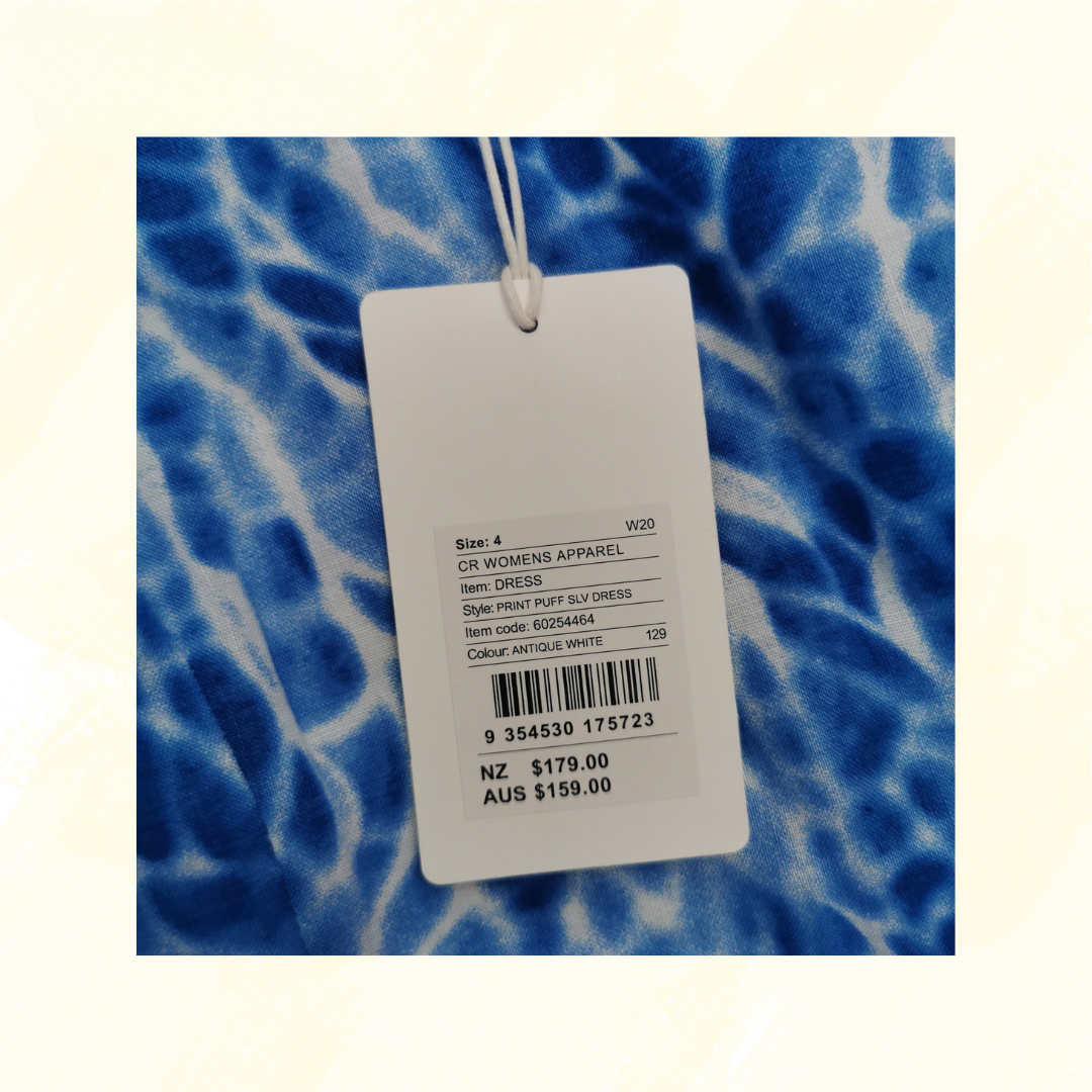 Country Road print Puff Sleeve Dress RRP $159.00 - 4 - White/Light Blue