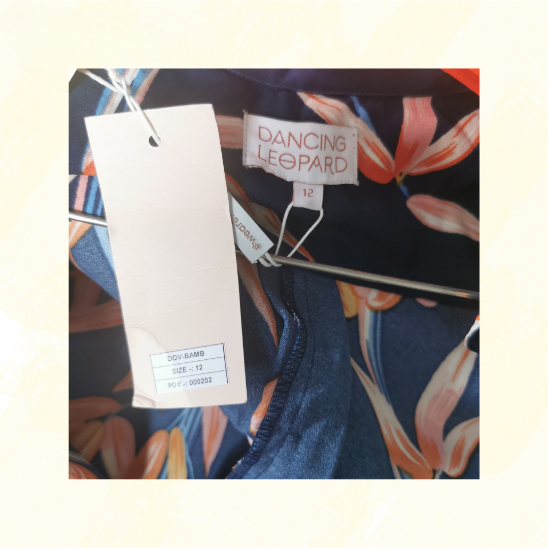 Dancing Leopard Dress - Size 12 - Navy/Orange