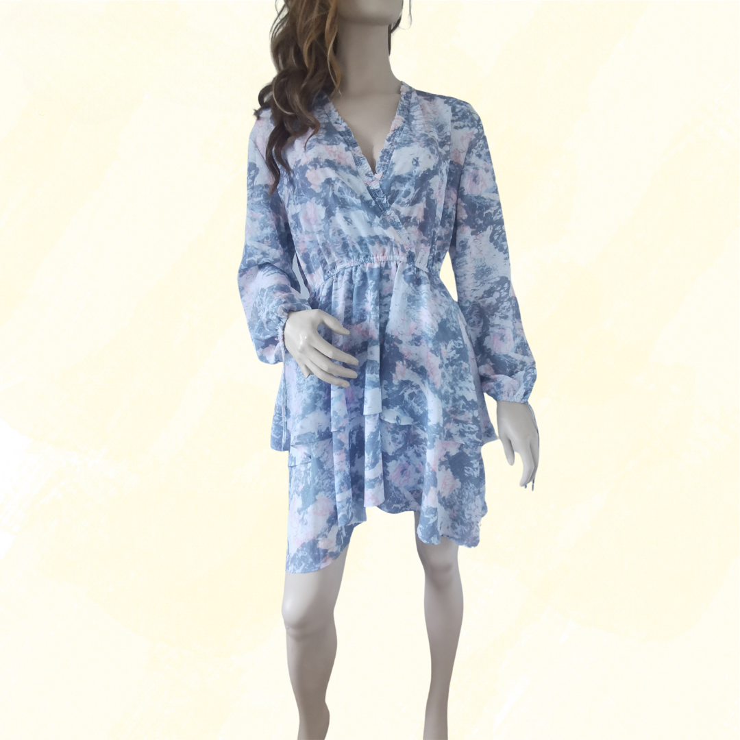 Decjuba Short Dress - Size 10 - Pink/Gray Print