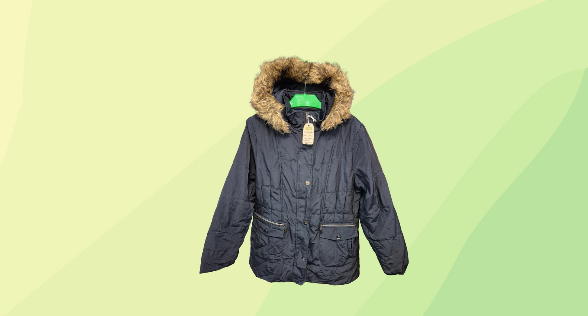 Fleet Street Mens Fur Lined Hooded Parka - L - Navy