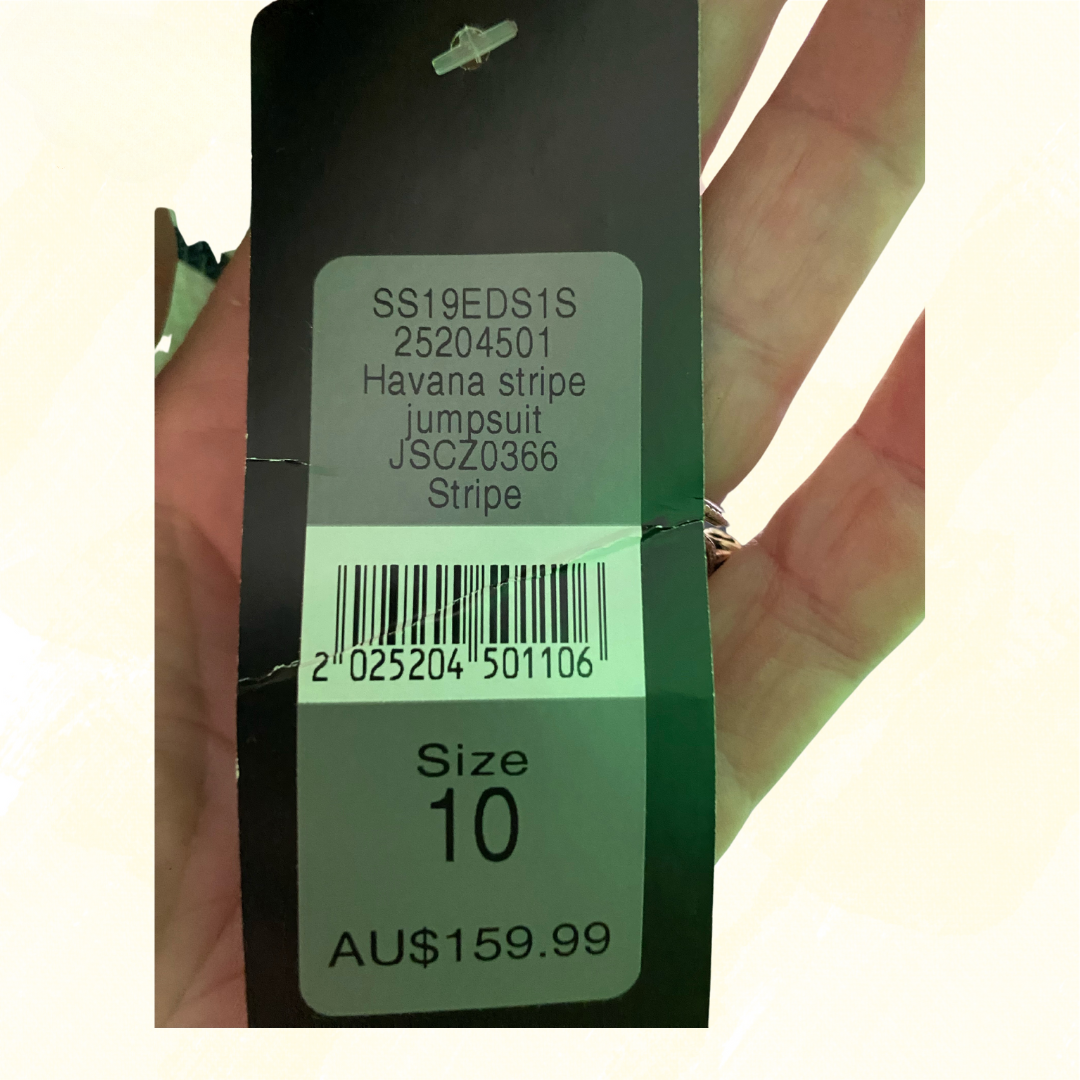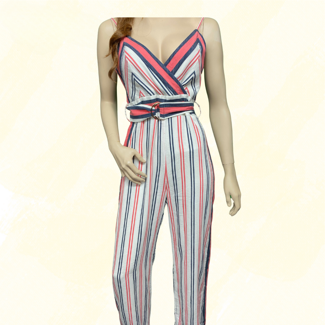 Forever New Havana Stripe Jumpsuit - Belted - White/Red/Blue - 10
