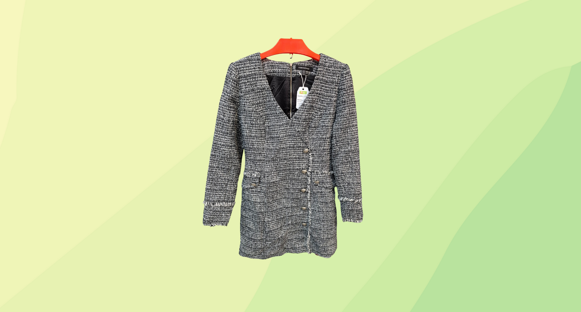 Forever New Katerina Boucle Blazer Dress - Size 10 - Black/Grey
