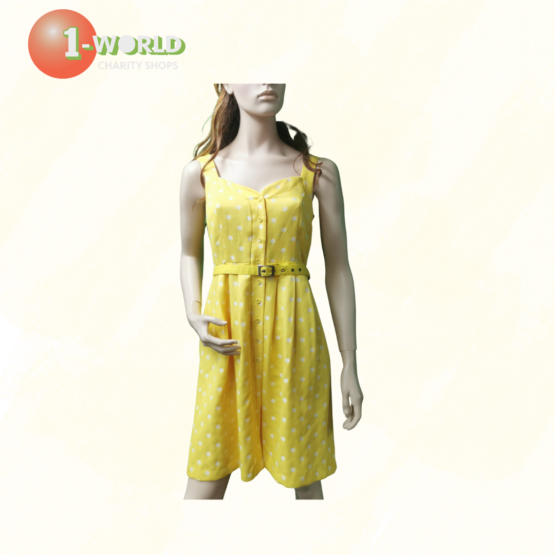 Hi There Karen Walker Belted Pencil Dress - 10 Yellow White Polka Dot