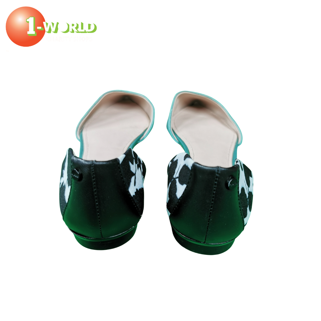 Flats Green Toe/White & Black Flower Print heel