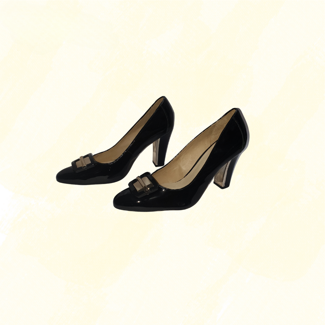 Nina Armando Patent Leather Heels Gold toned bar - Black - 41