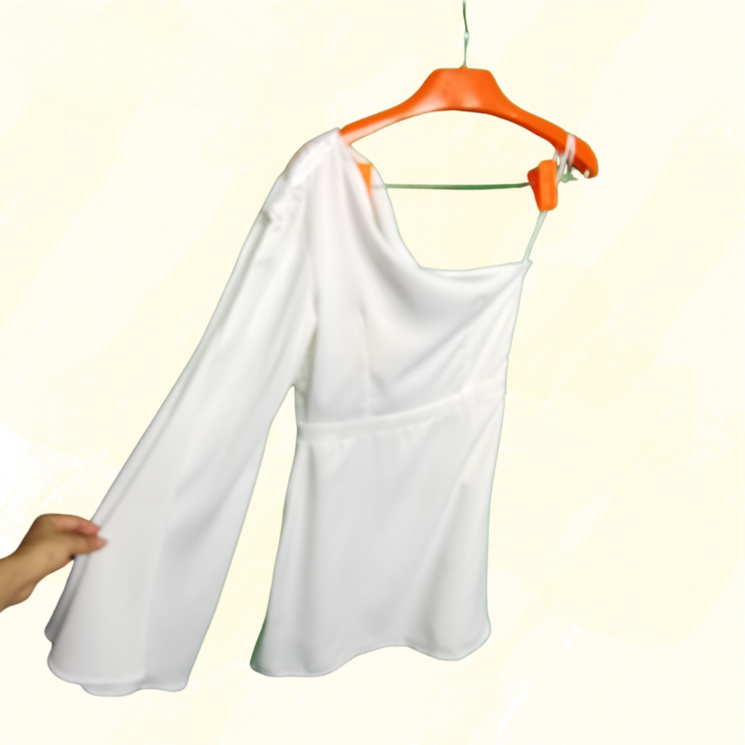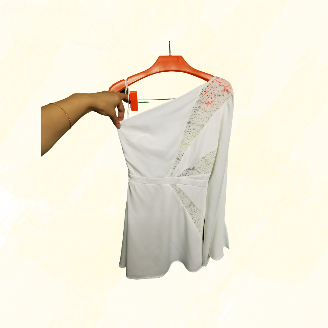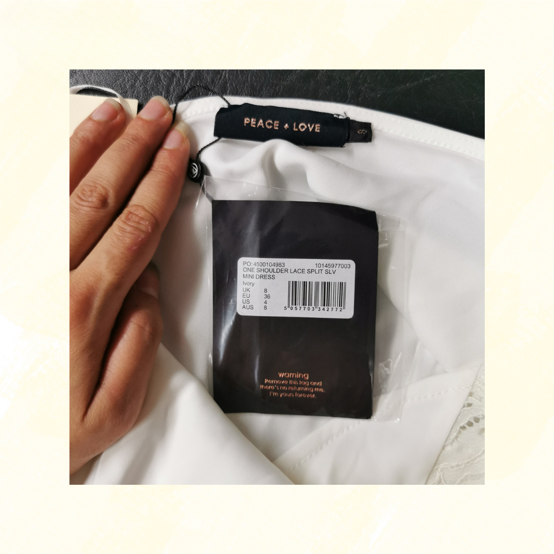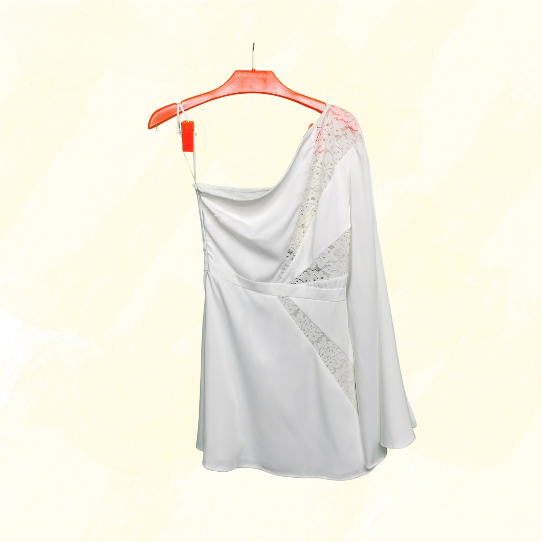 Peace+Love One Shoulder Lace Split SLV Mini Dress - size 8 - Ivory
