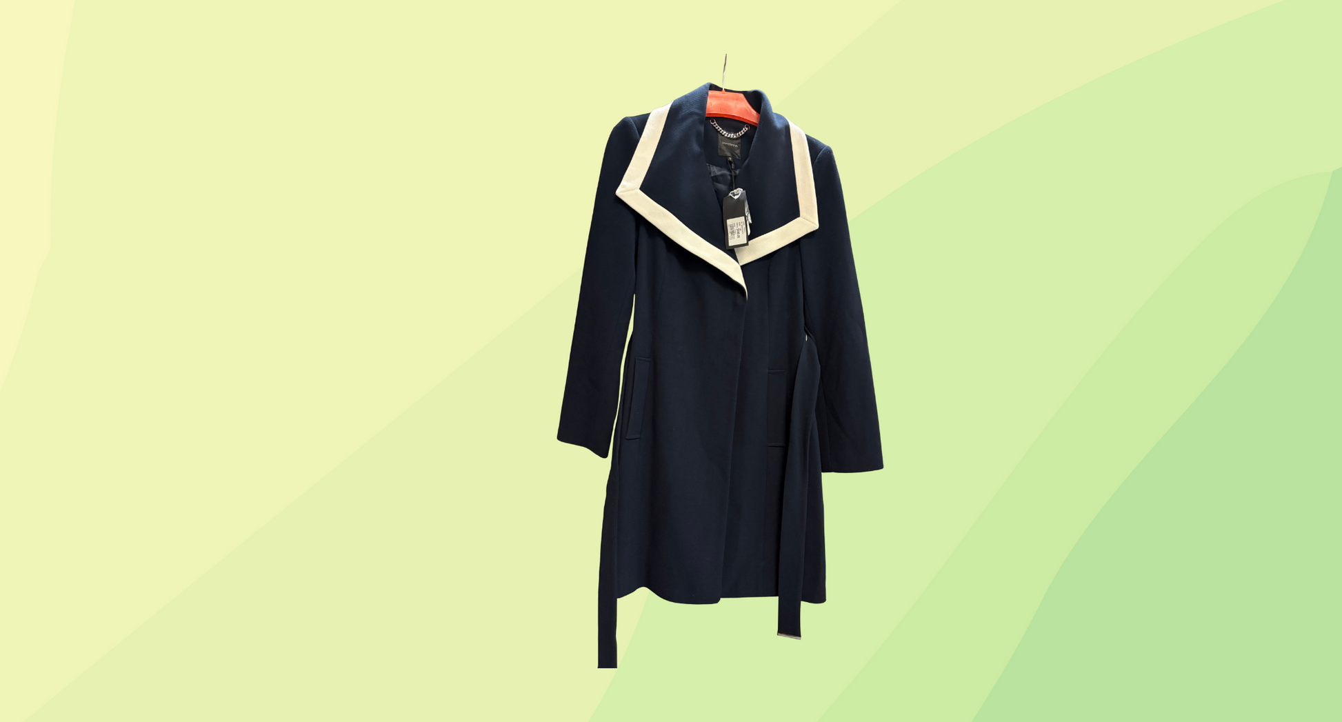 Portmans Snap Button Trench Coat RRP $149.95 - Size 10 - Navy/Ivory