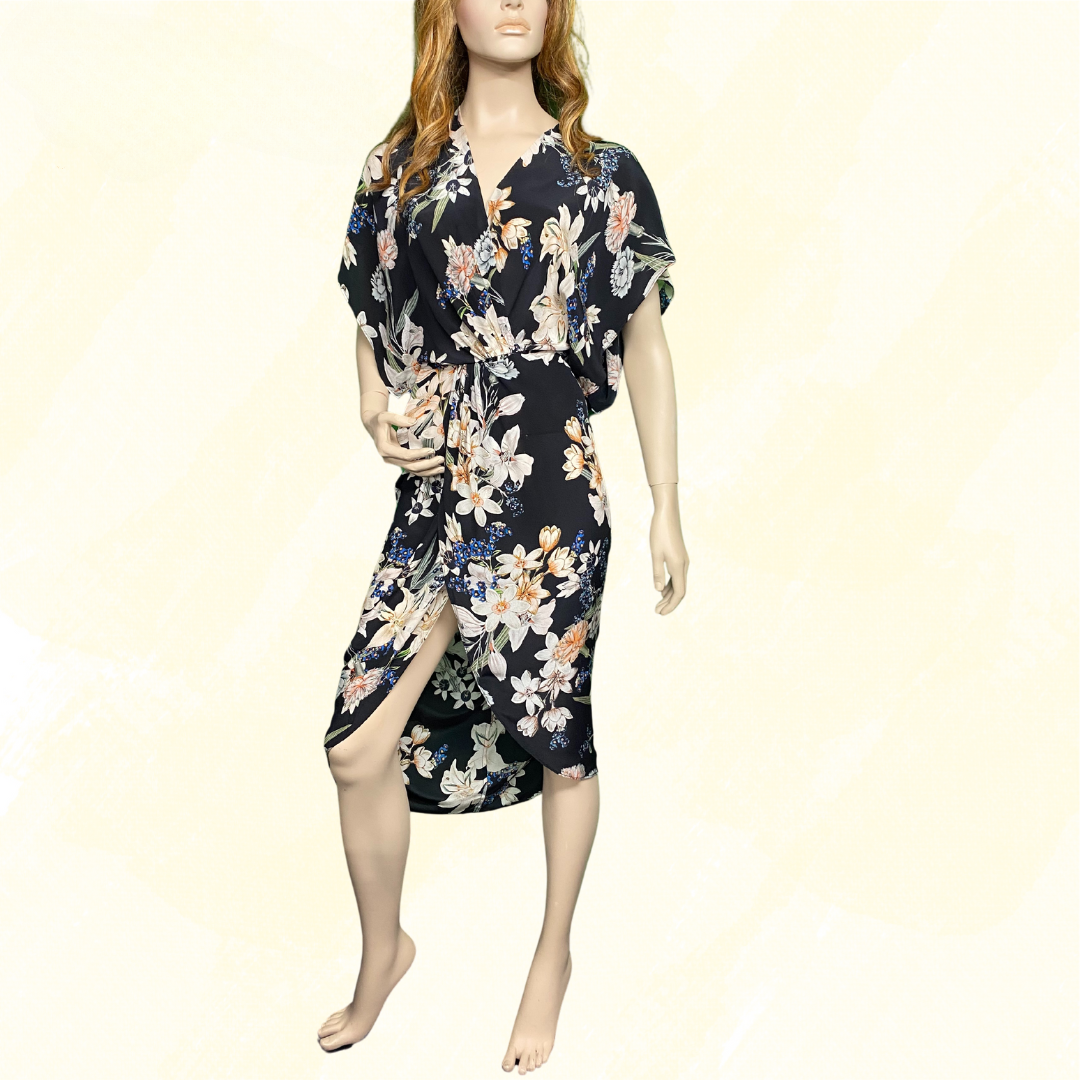 Rodeo Show Silk Dress, mid length - Black/Floral 10