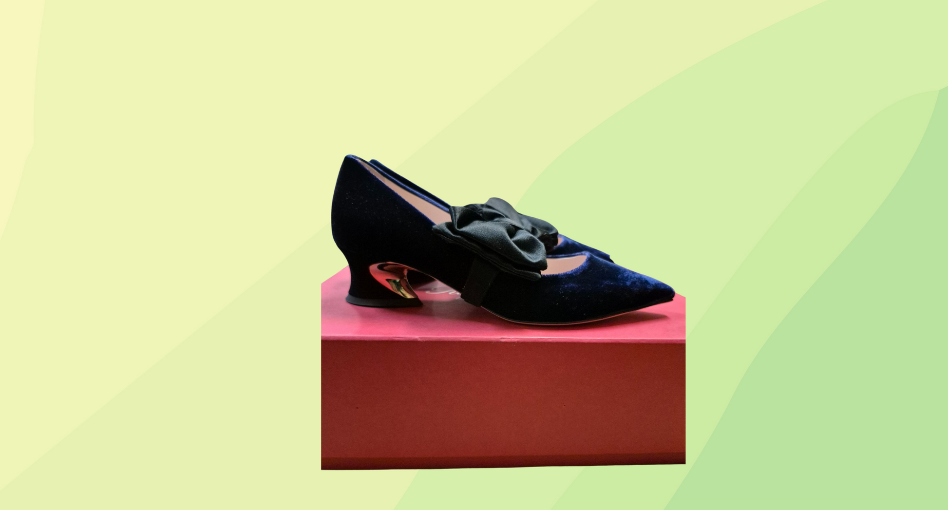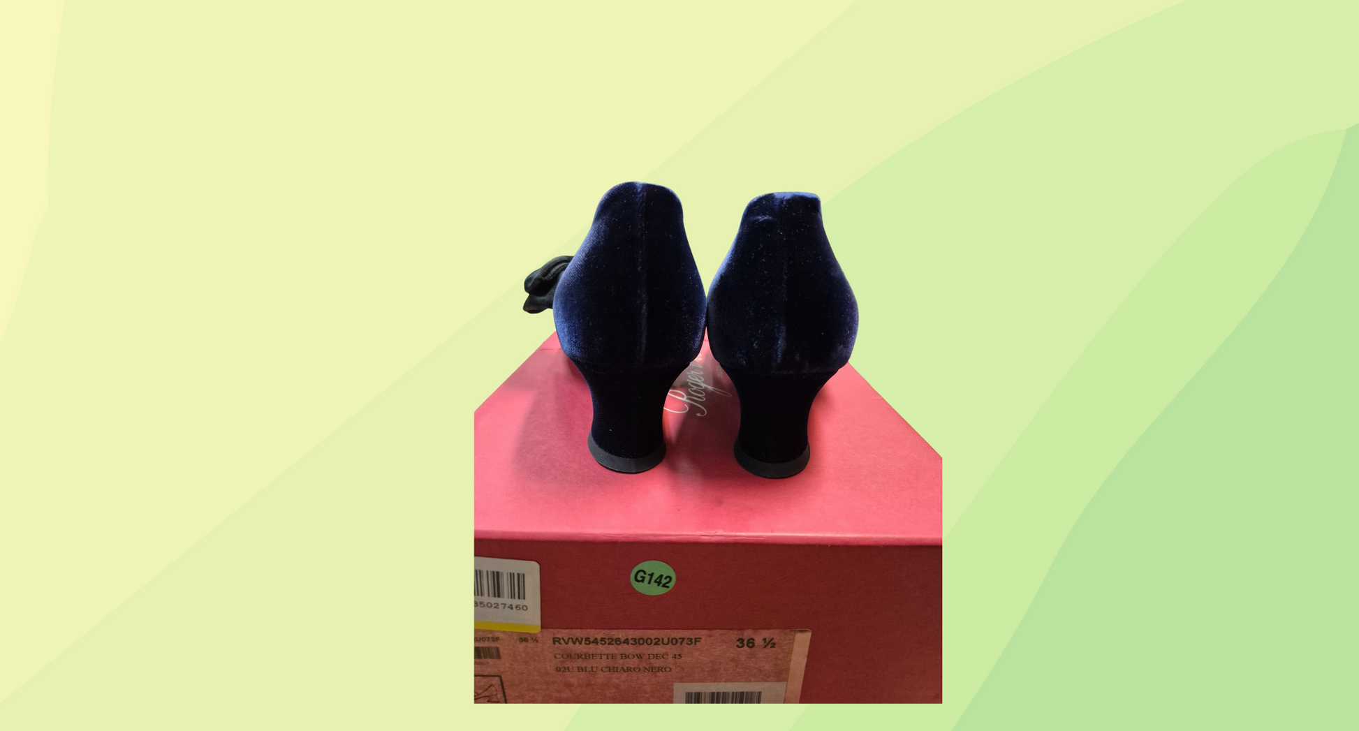 Roger Vivier Courbette Bow Dec Shoes - Velvet - Size 36.5 - Blue