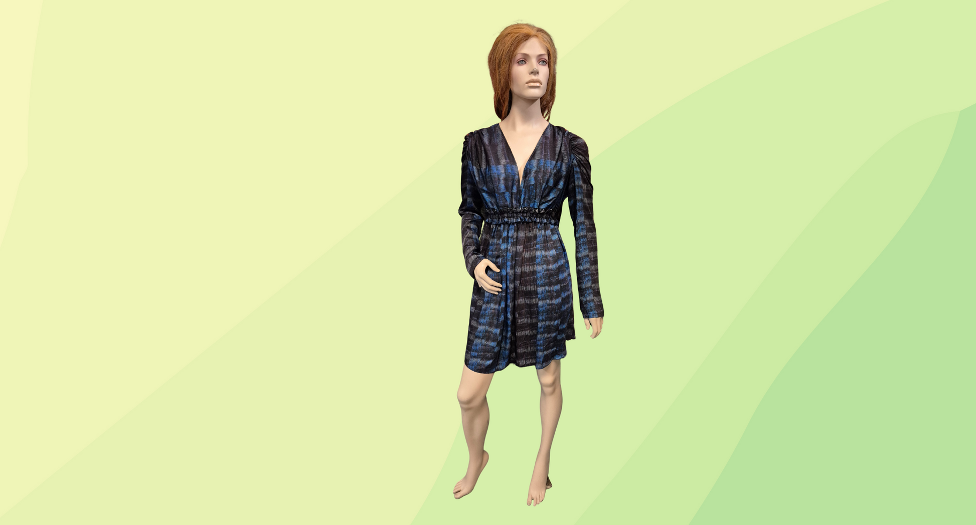 See by Chloe Gathered Elastic Waist Mini Dress - Size 10 - Blue/Black