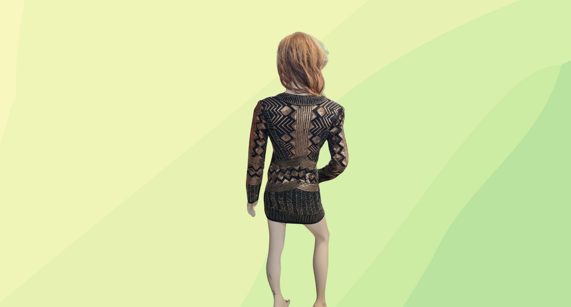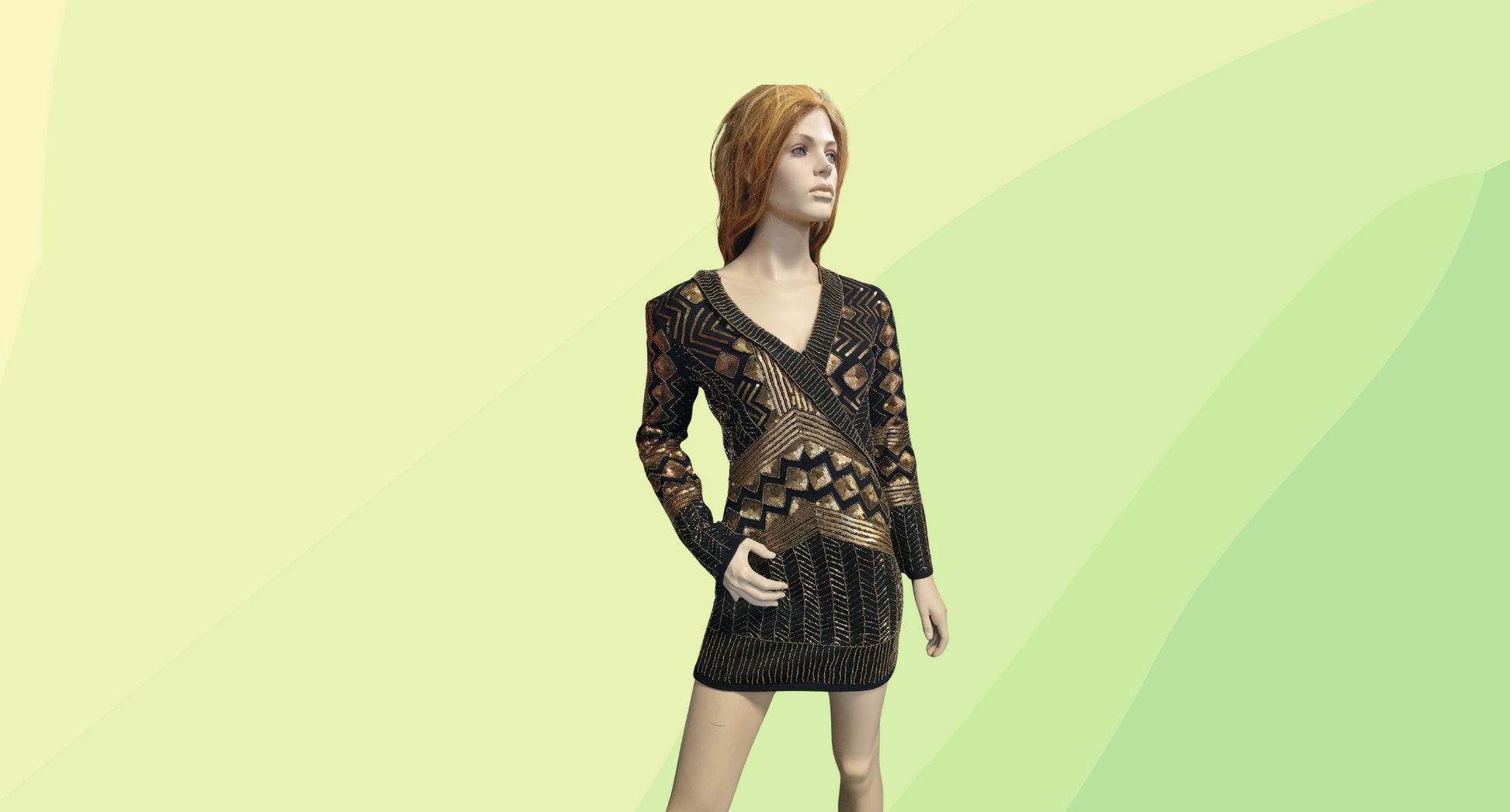 Starlet Wrap Front Embellishment Mini Dress - Size 8 - Black/Bronze