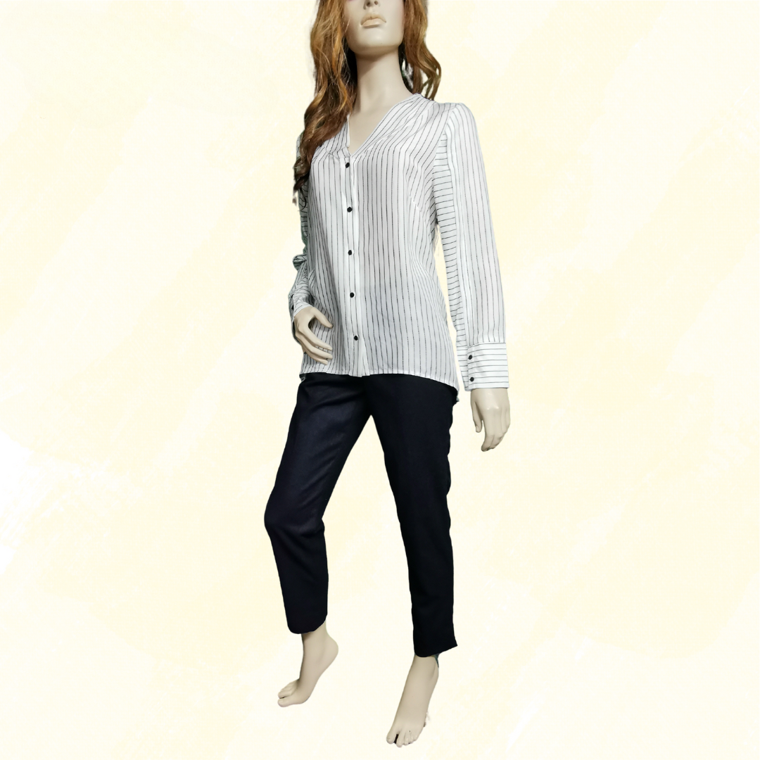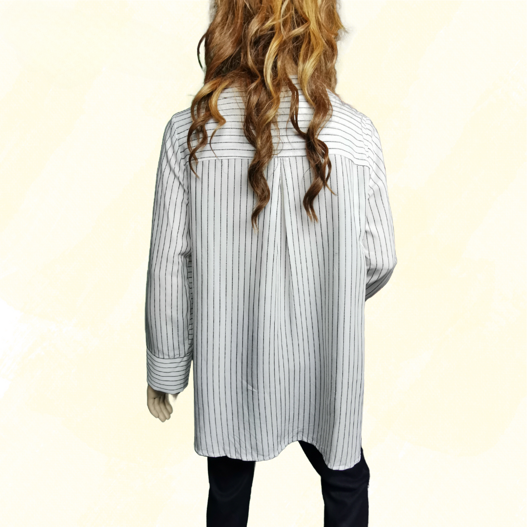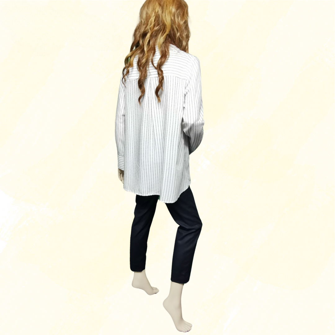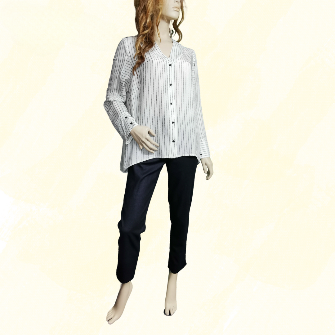 THE ARK shirt - Large - White with narrow Black Stripes