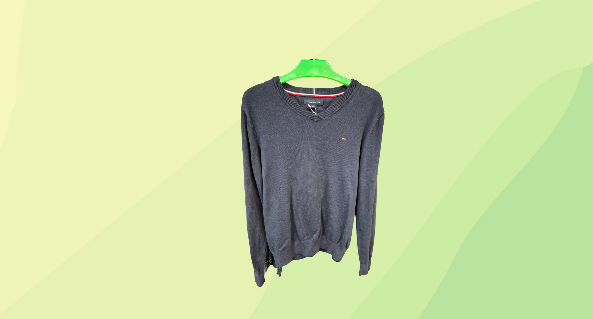 Tommy Hilfiger Mens V-Neck Knit Pullover - M - Navy