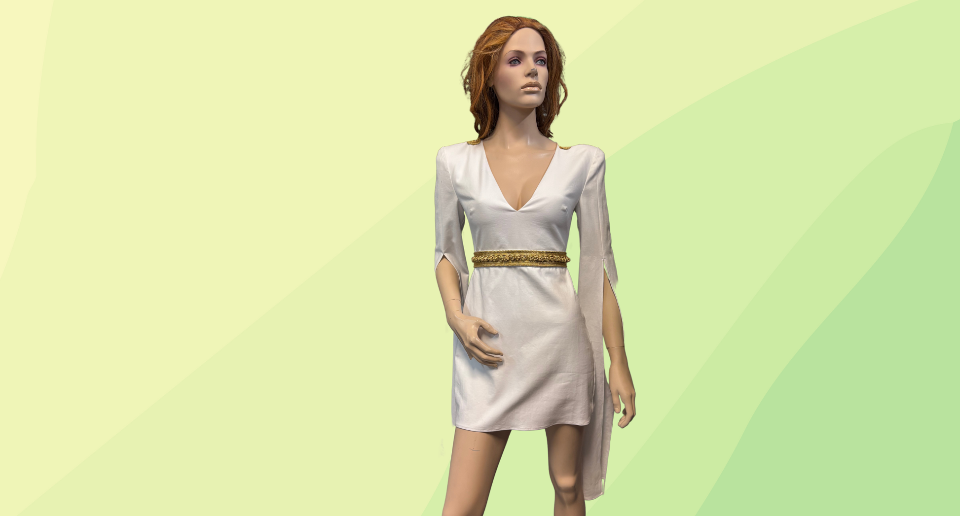 Torrence Extra Long Sleeve Mini Dress $399 - Size 8 - White/Gold