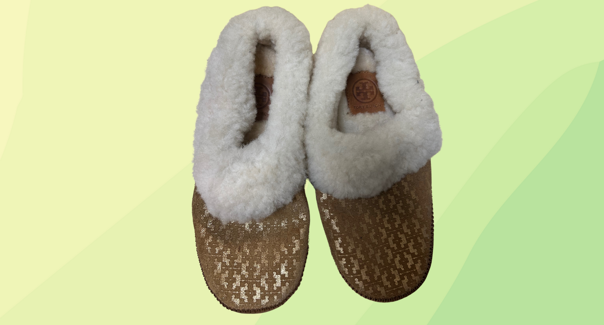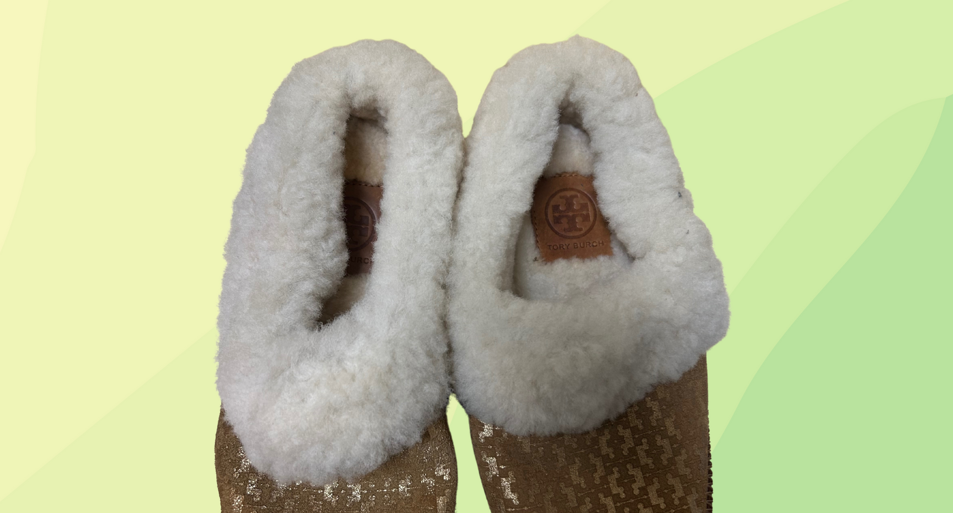 Tory Burch Shearling Mule Slipper - Coley Suede - Size 6 - Camel Brown