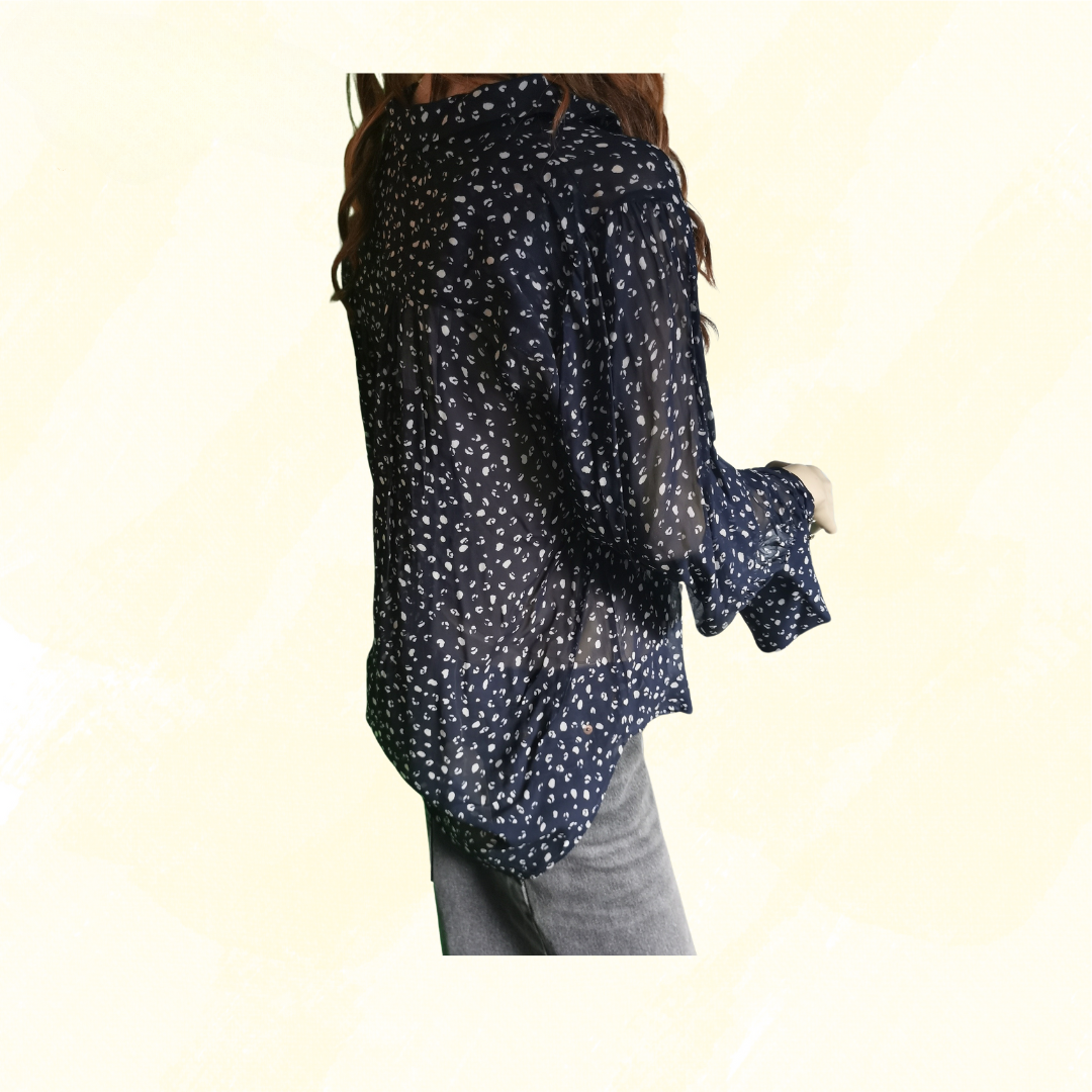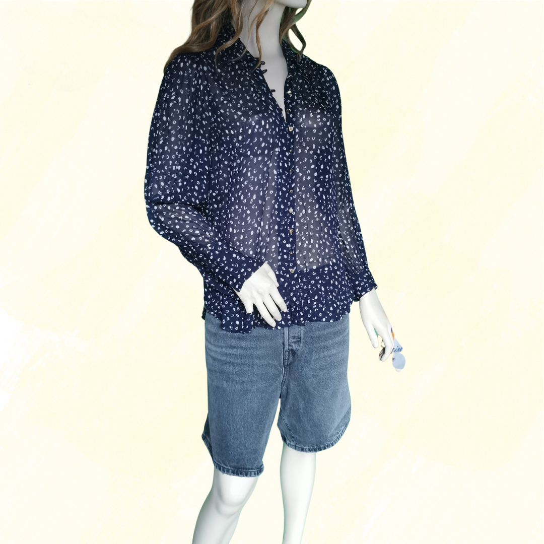 Witchery ABST Animal Print Shirt RRP $149.95 - Size 10 - Slate/Navy