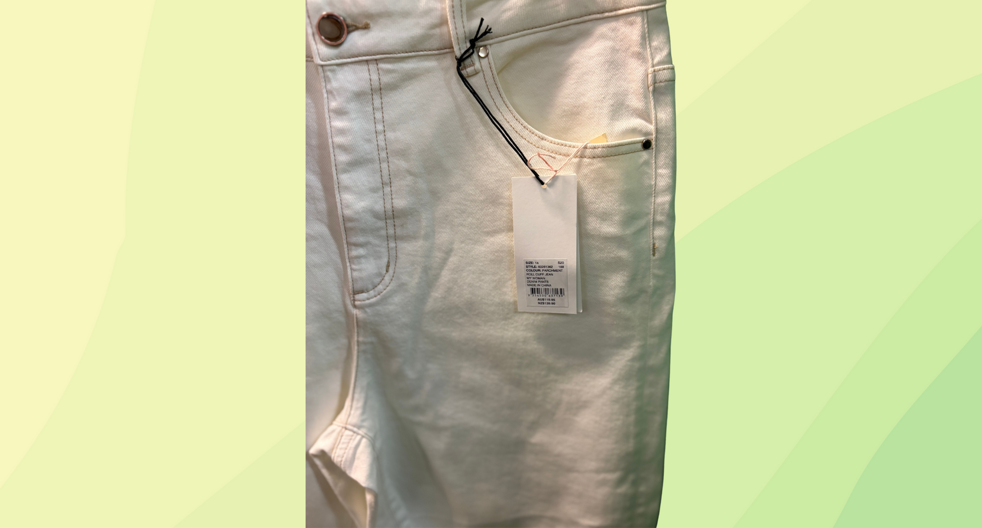 Witchery Roll Cuff Jean RRP $119.95 - Size 14 - Parchment