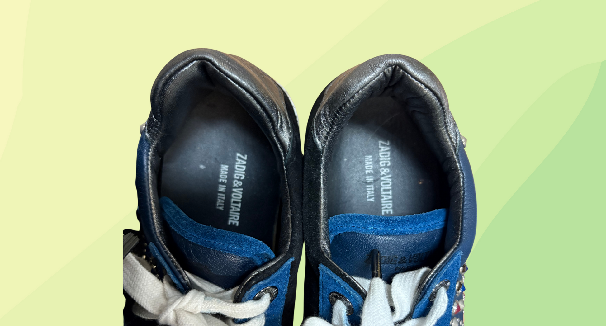 Zadig & Voltaire Leather Suede Studded Jungle Cloud Sneakers - Size 37 - Blue